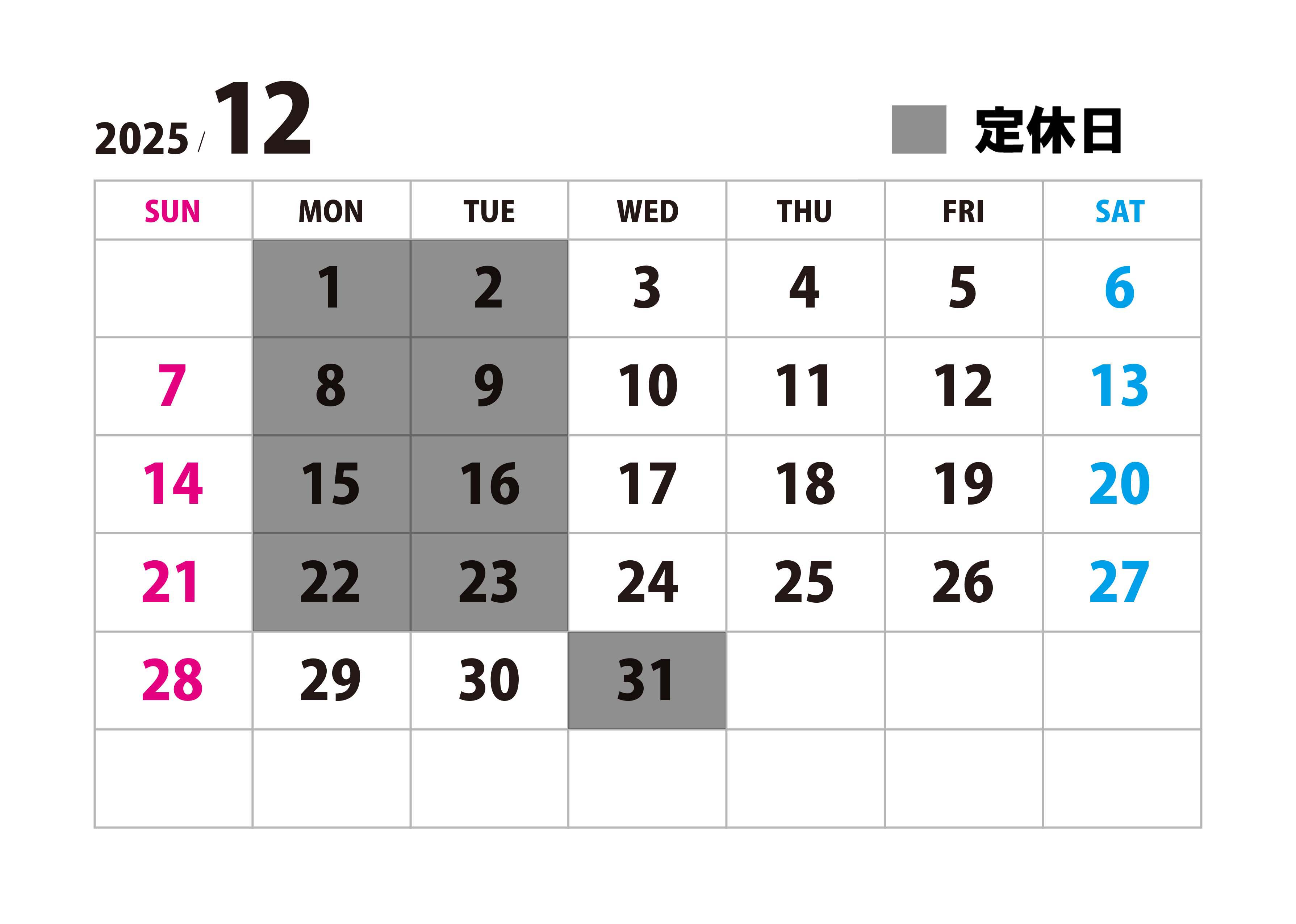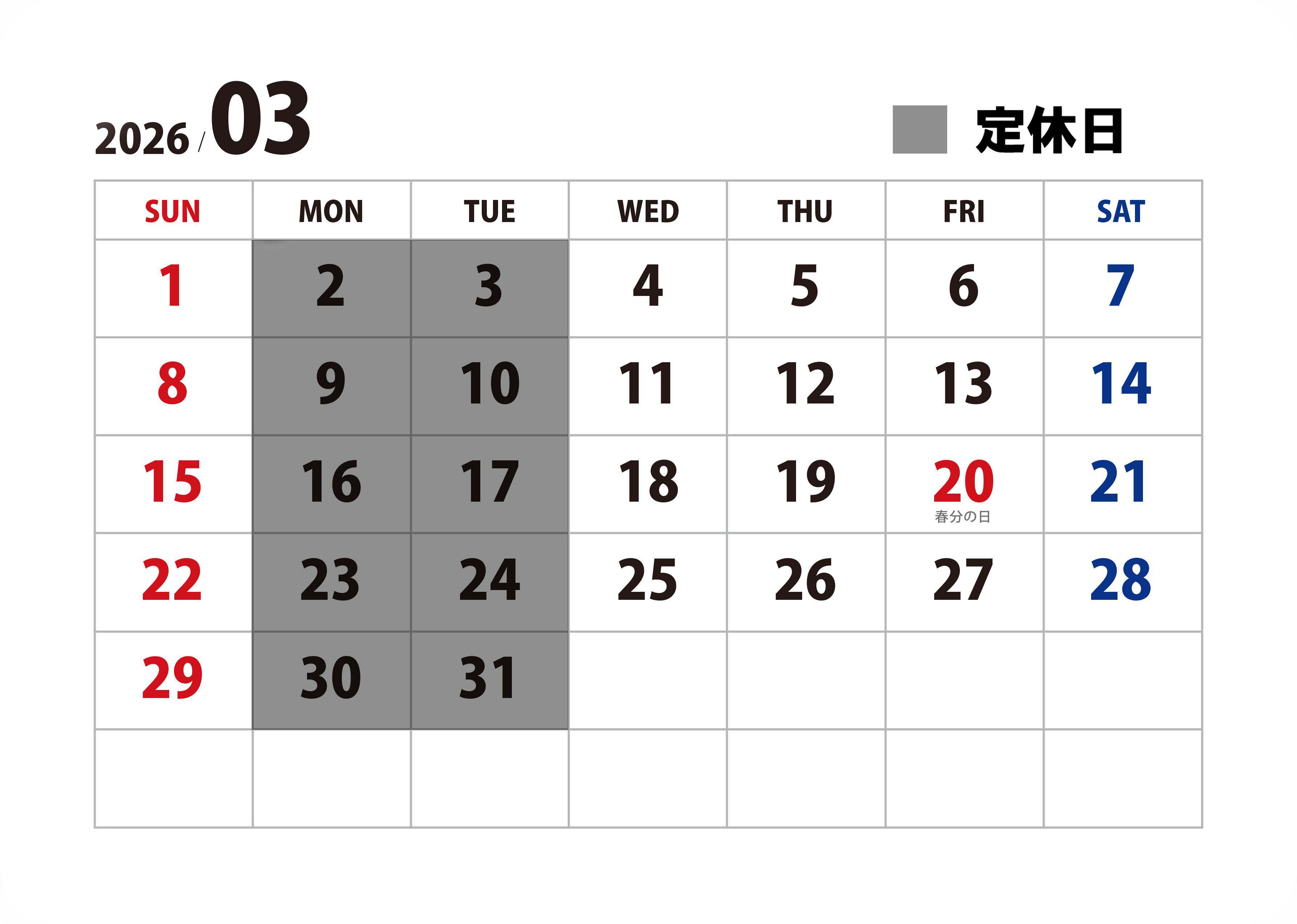 ・定休日:毎週月曜日・火曜日。