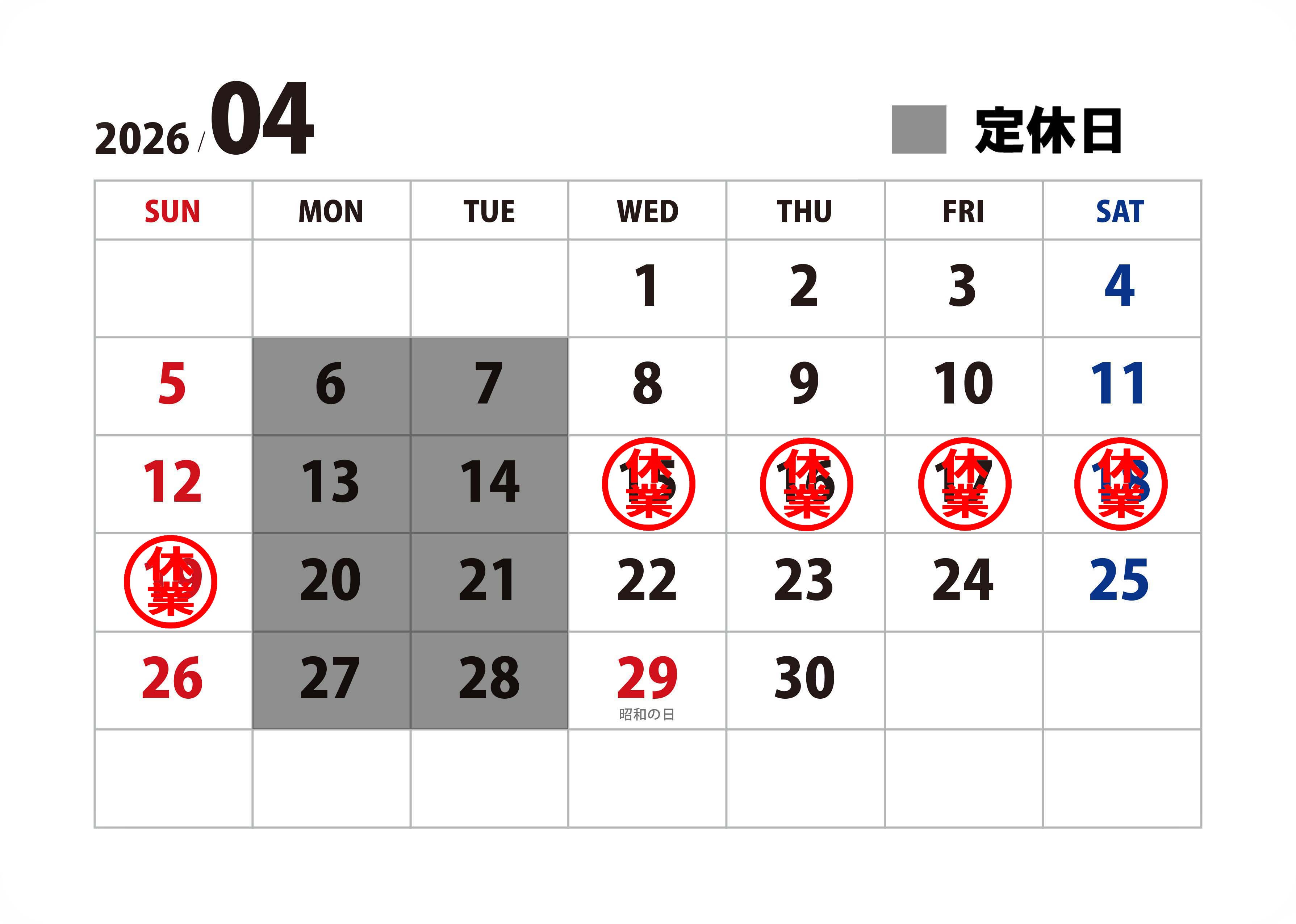 【SOWWA営業カレンダー】